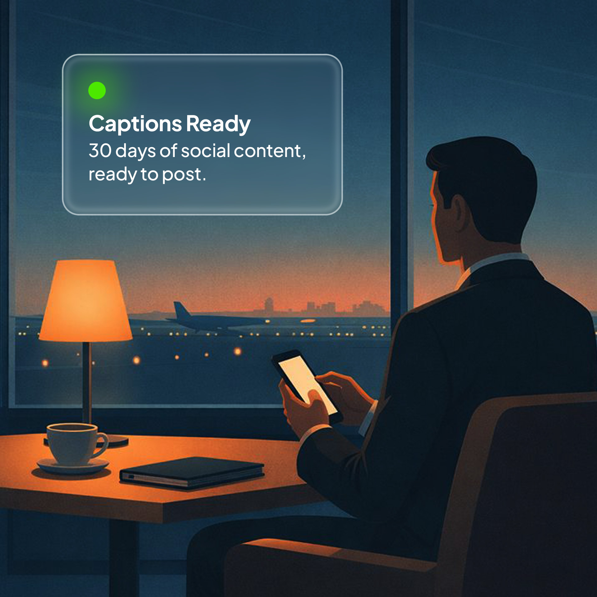 Once everything is ready, you need to start generating traffic. We write 30 compelling captions (1 month's worth of content) based on your Brand DNA, ready to post, so you can drive traffic immediately and start conversations with the right people.